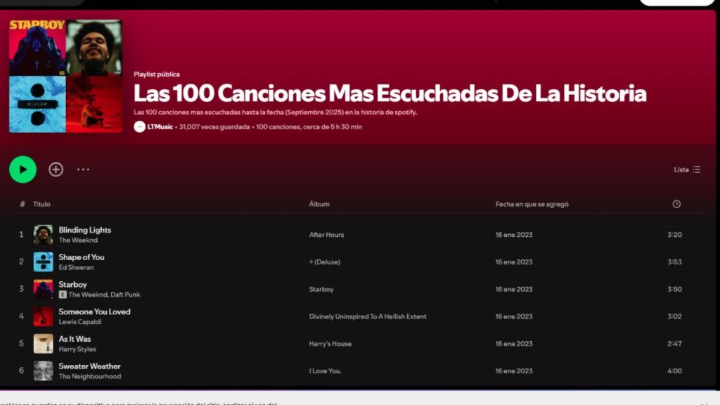 Estas canciones no solo dominan las plataformas digitales; forman parte del ADN musical colectivo de muchas generaciones. ¿Cuál de estas diez es tu favorita? ¿Y qué canción crees que debería estar en el top si la playlist se actualizara hoy?