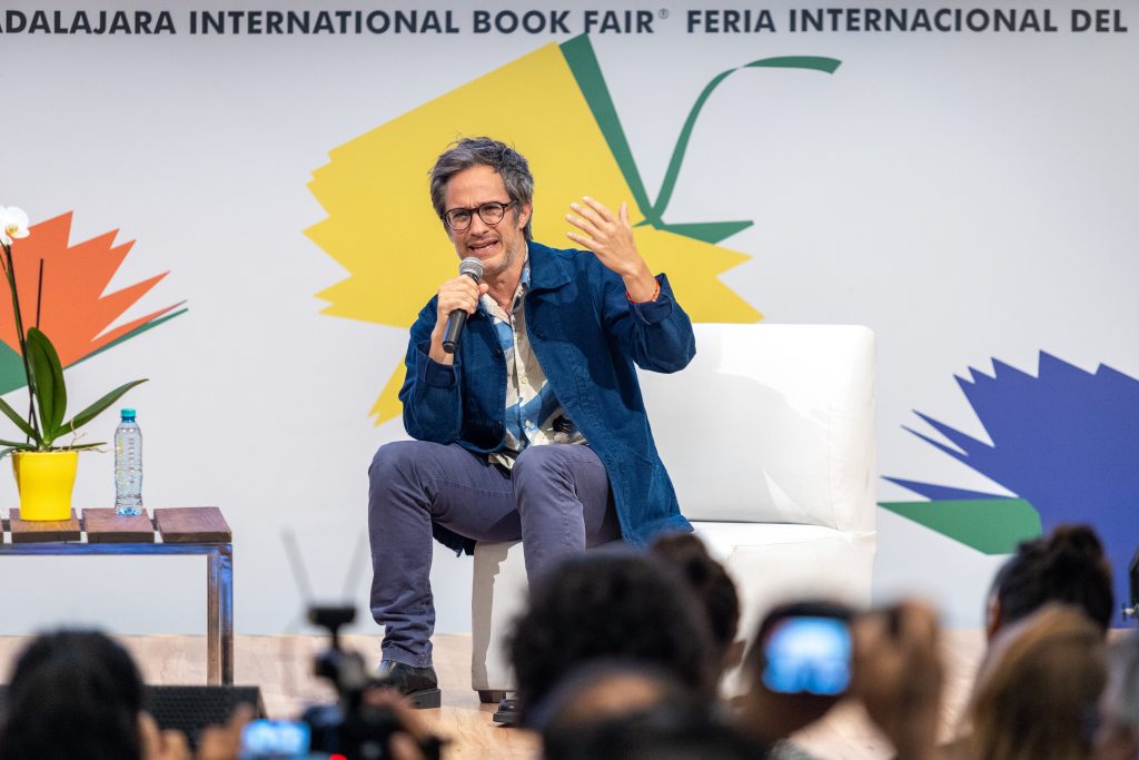 El Auditorio Juan Rulfo lució lleno para recibir a Gael García Bernal, quien asistió a la FIL acompañado de Gina Jaramillo para presentar dos de sus proyectos más recientes: el audiolibro de La metamorfosis, de Franz Kafka, y Hilde Krüger: la ficción y la guerra, una radionovela ambientada en México antes de la Segunda Guerra Mundial.